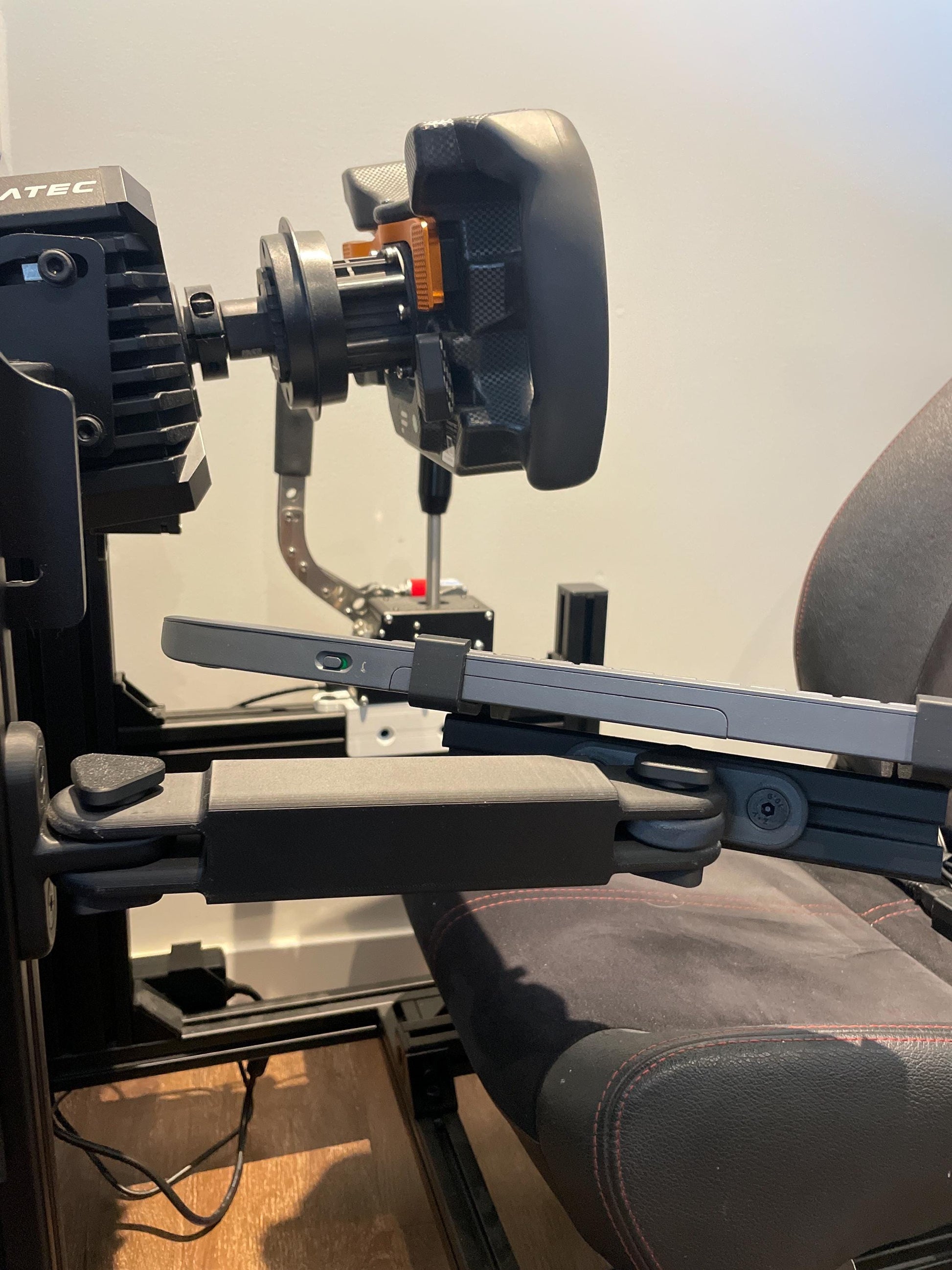 Upgrade your sim racing setup with the RaceReady3D Dual-Swivel Keyboard Mount, designed for maximum flexibility and convenience. With two swivel points, this mount allows you to easily position your keyboard exactly where you need itβswivel it away while racing or bring it comfortably over your lap when needed.