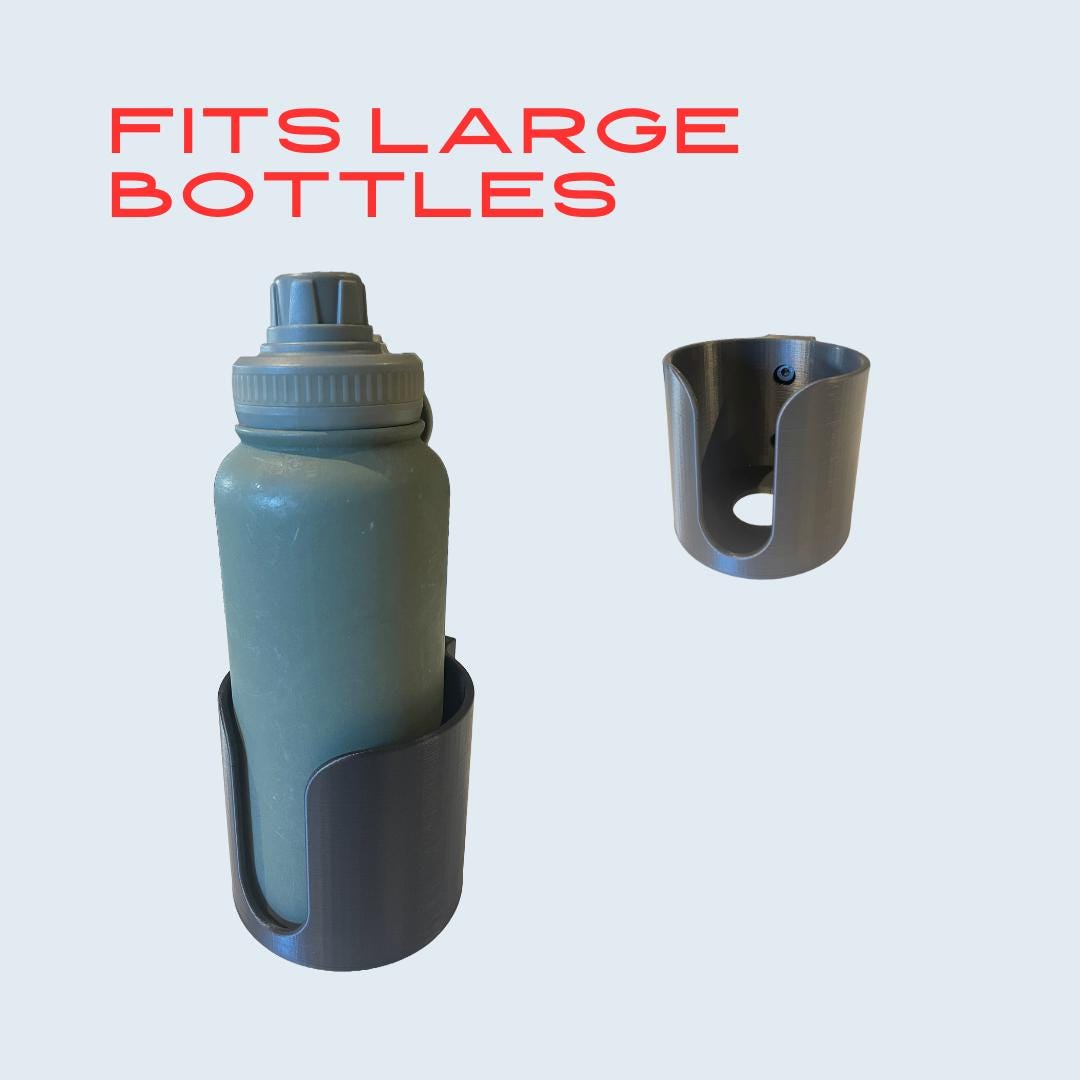 Upgrade your racing simulator setup with this sleek and functional 3D-printed cup holder! Designed to fit aluminum extrusion rigs, it securely holds beverages up to 96.5mm (3.8") in diameter — perfect for water bottles such as the 1L Yeti Rambler.